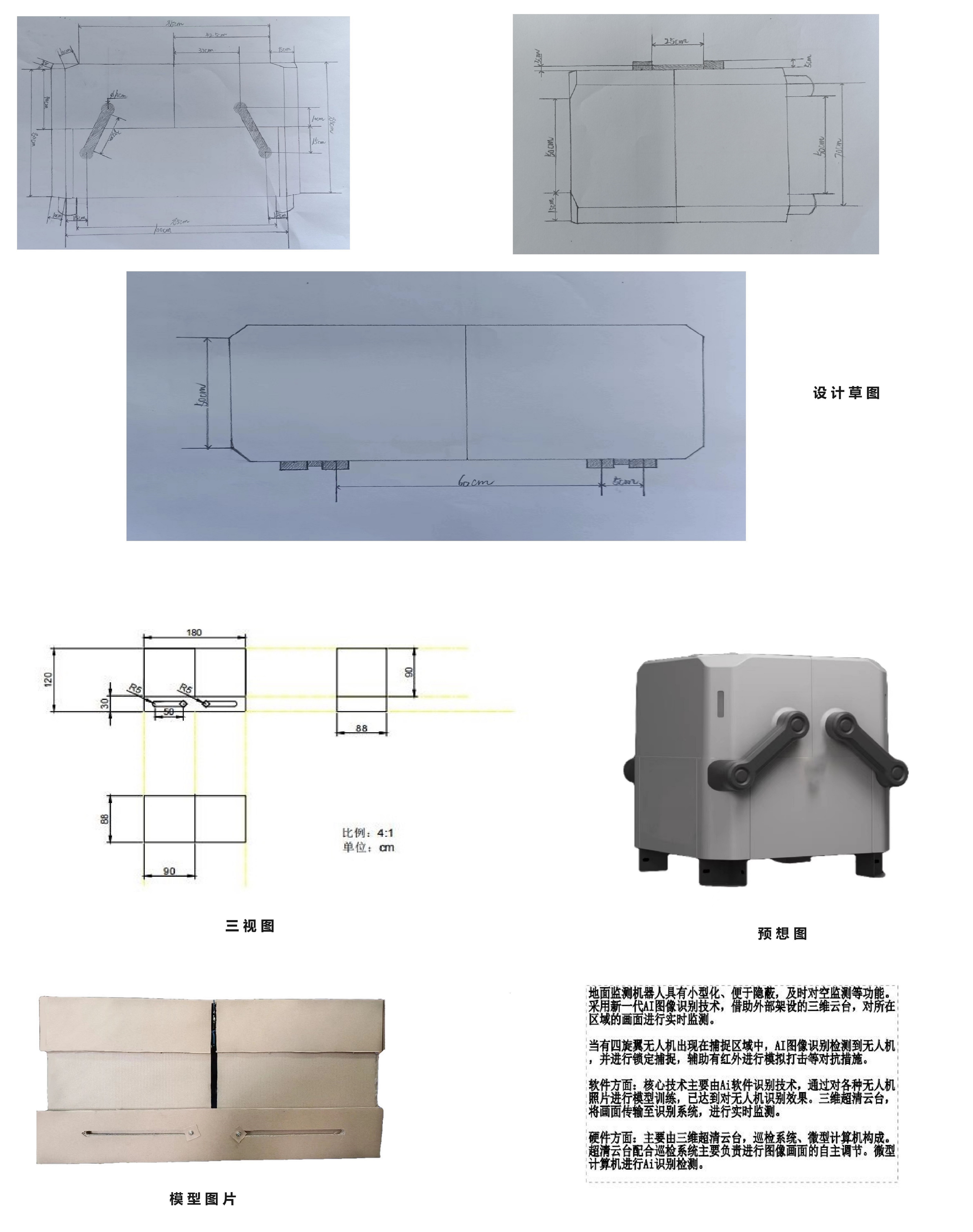 本产品采用“地面云台+巡检数控平台”双向运行模式。地面检测辅助系统由二维云台构成,采用新一代AI图像采集识别技术,对其空域进行多方位多角度监测。当监测到不明飞行设备时,对后台发送数据。巡检数控平台接收进行并自主分析数据,自动对不明飞行设备实时追踪。此外,引入AI采集识别技术,自动辨别追踪目标,调整云台角度、拍摄距离等,从而完成对管制空域的巡检任务和对不明飞行设备的追踪任务。
